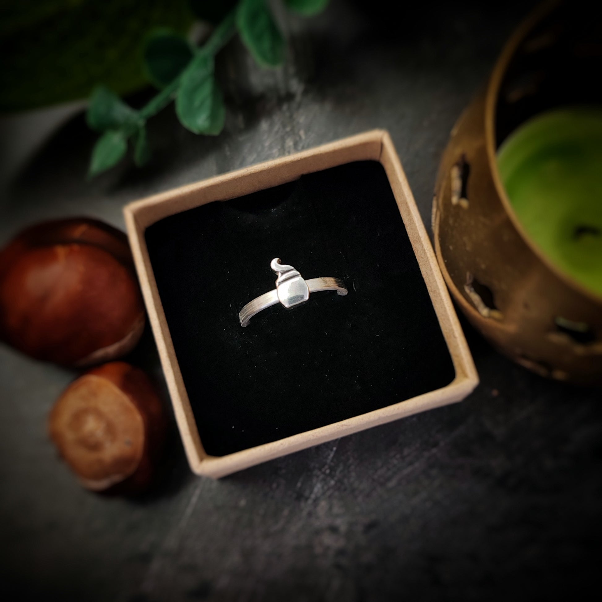 Beautiful cauldron ring. Made from recycled silver in your ring size. The cauldron measures approximately 9mm tall.