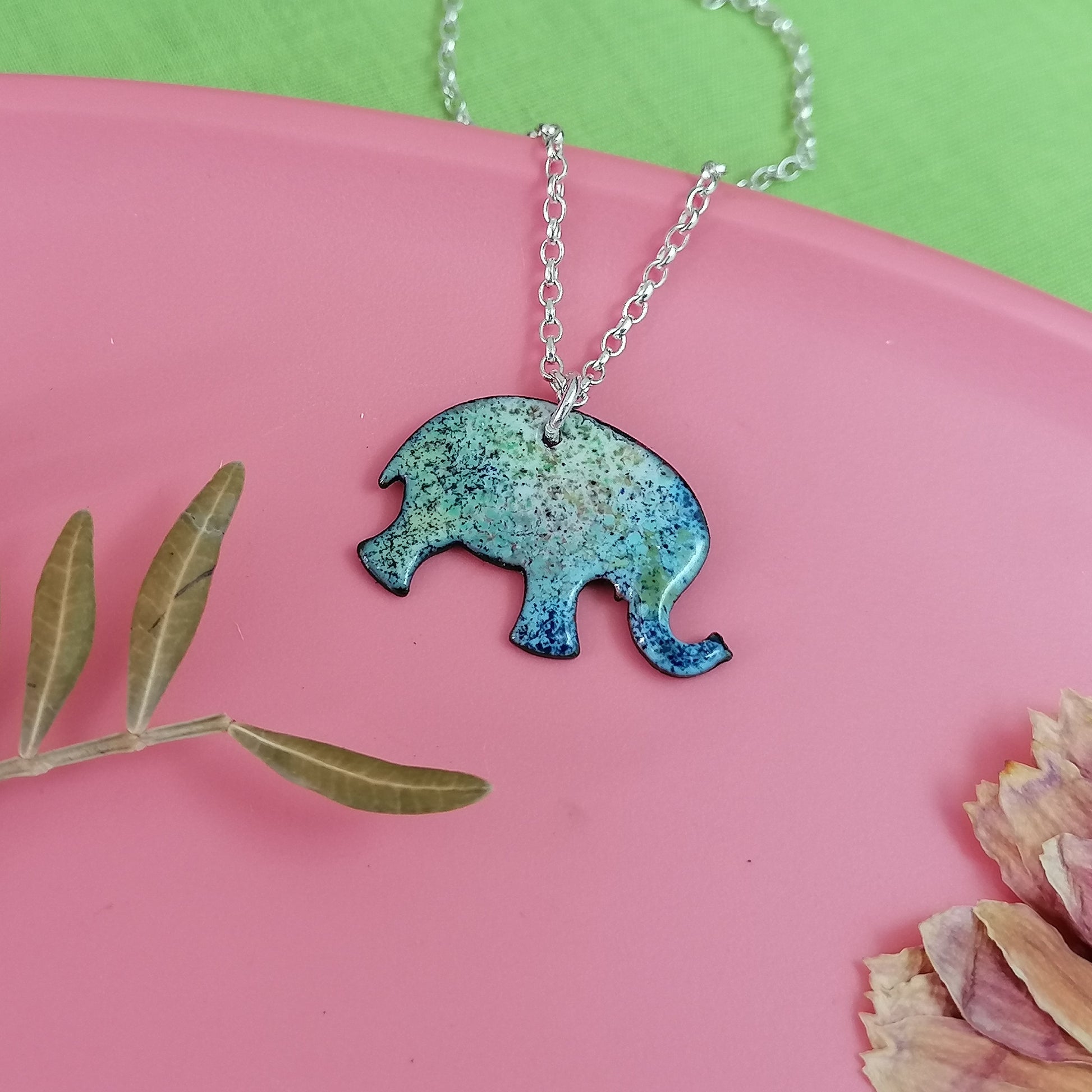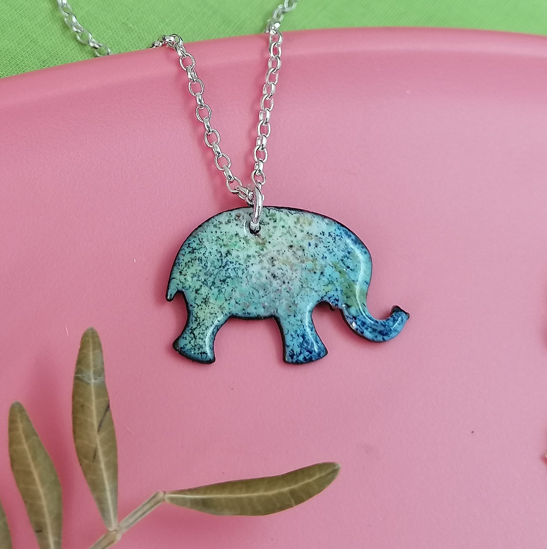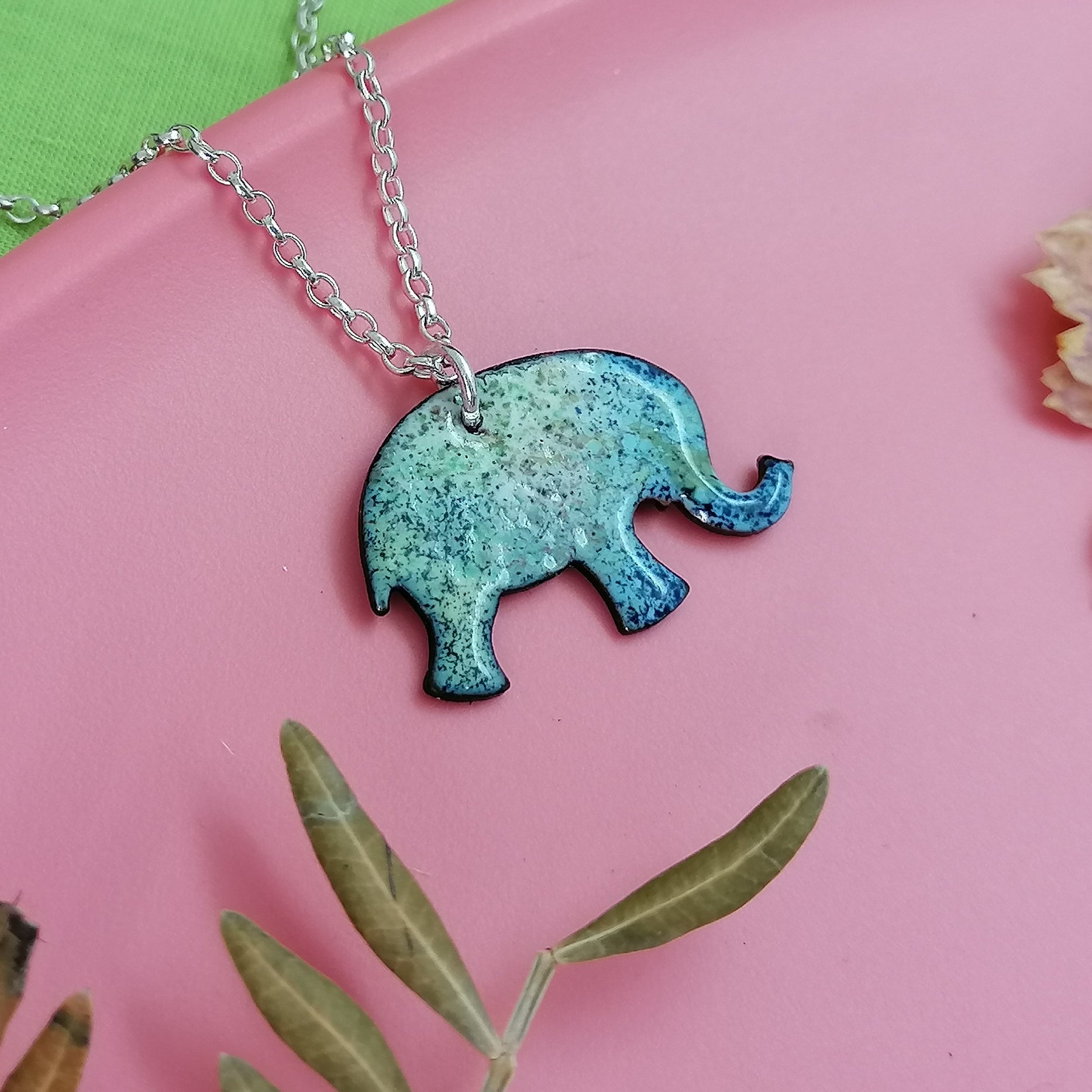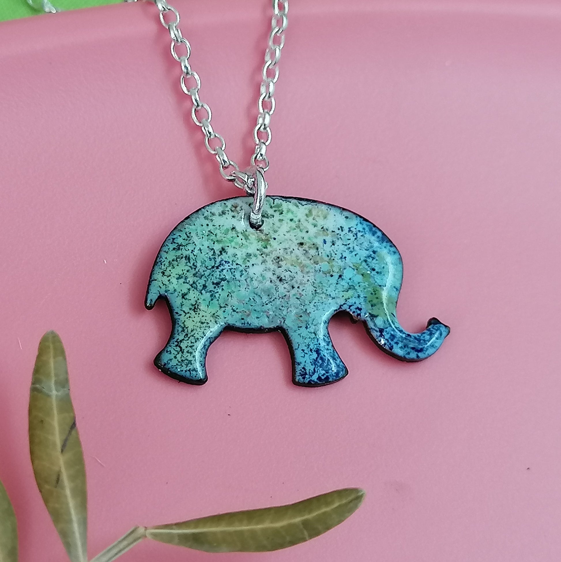 Stunning colourful enamelled elephant necklace. The elephant is made from copper and enamelled on both sides meaning the copper will not be touching your skin. This beautiful one of a kind pendant hangs from a pretty 18" sterling silver belcher chain.