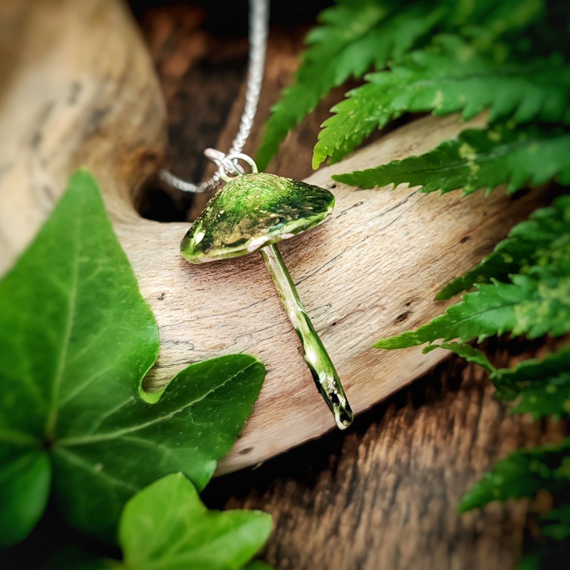 This is an absolutely gorgeous little hand forged and hand painted mushroom necklace. The magical mushroom pendant has been hand made from recycled sterling silver and then hand painted. This cute as anything pendant hangs from an 18" sterling silver chain.