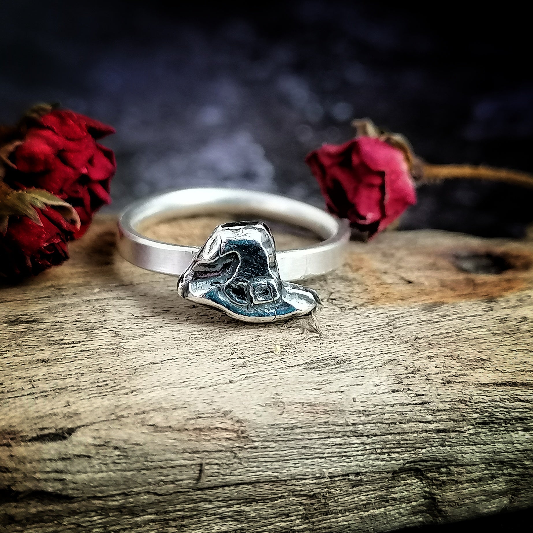 This witches hat ring features a handmade recycled fine silver ghost on a recycled sterling silver ring band. Please choose your ring size from the drop down menu and your ring will be made just for you. If you do not know your ring size I recommend having it professional measured by a jeweller to ensure the perfect fit. Ring sizes are listed in UK ring sizes.