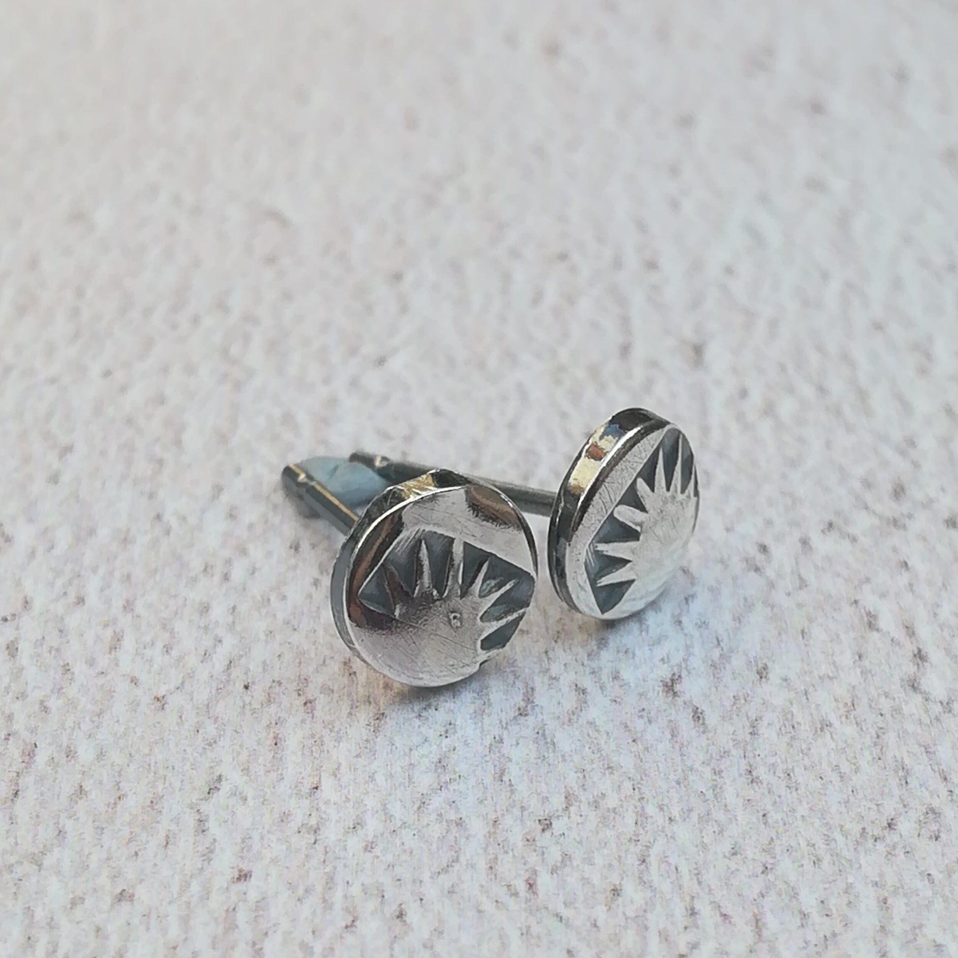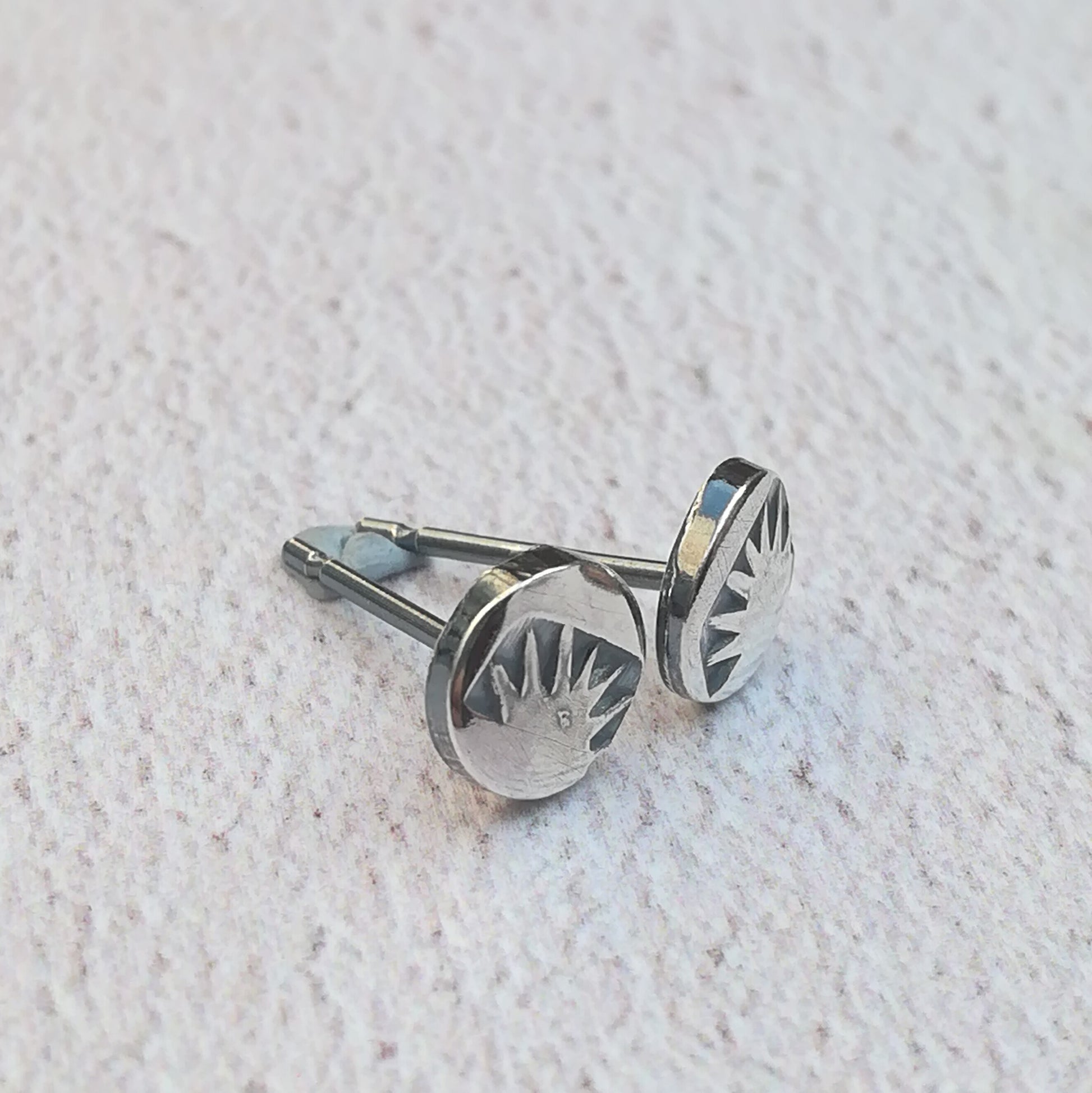 The earrings measure 6mm in diameter and will be carefully hand stamped using traditional handmade navajo metal stamps.