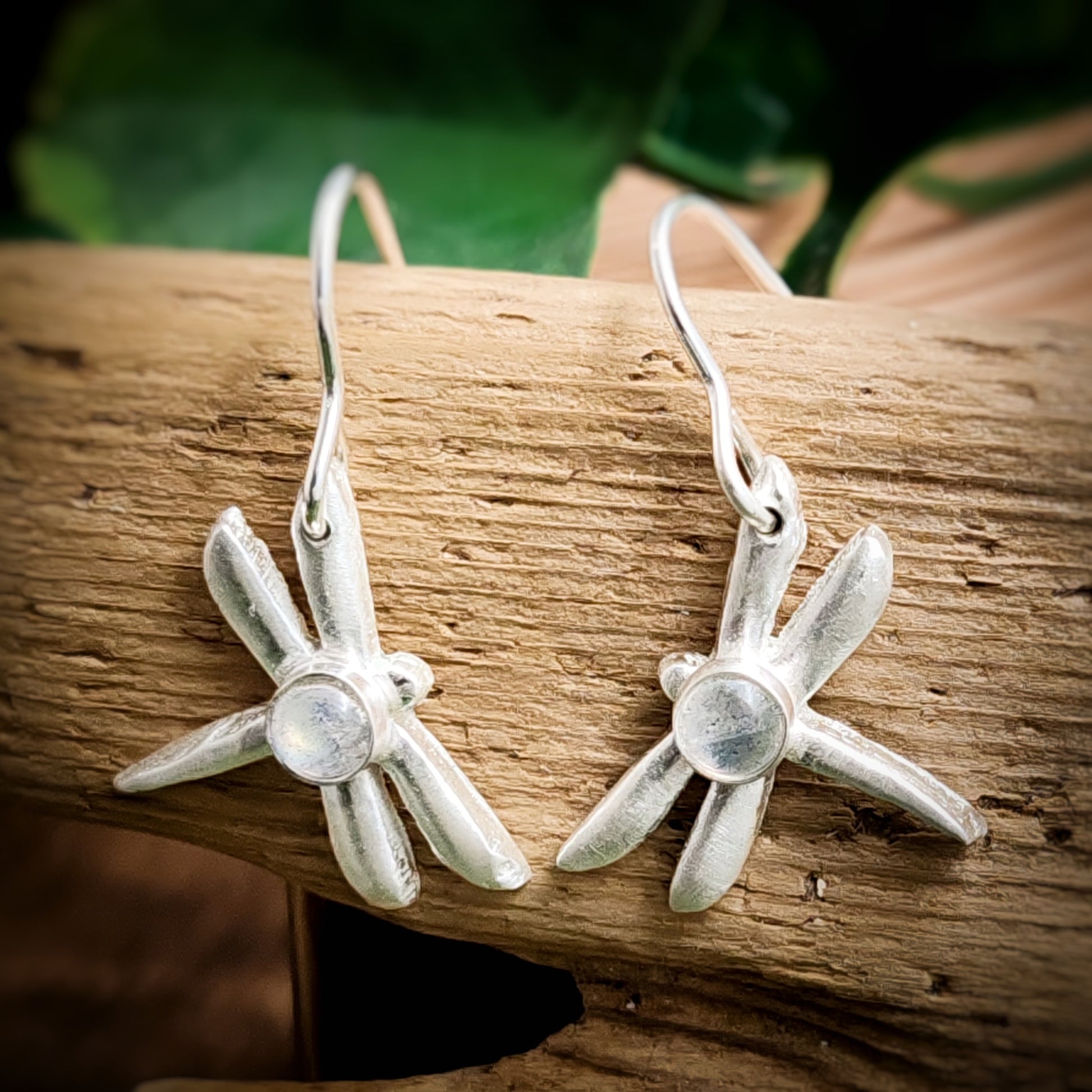 Make a statement with these beautiful handmade dragonfly dangle earrings! Crafted from recycled silver and featuring a breathtaking labradorite gemstone, these earrings are sure to captivate and inspire! Treat yourself or someone special today!
