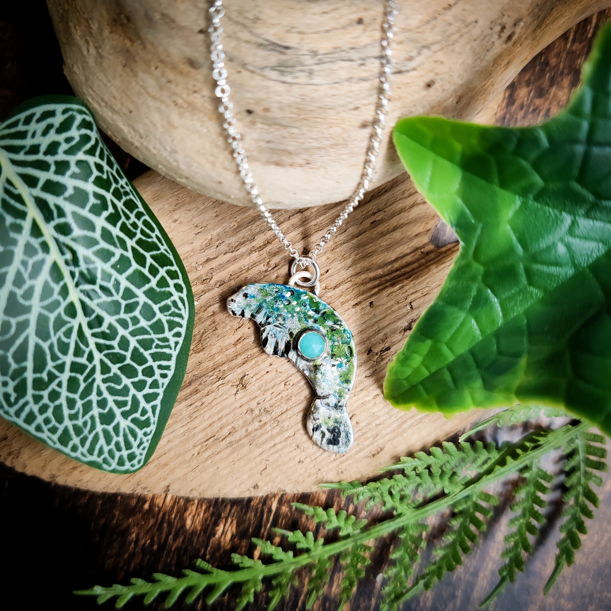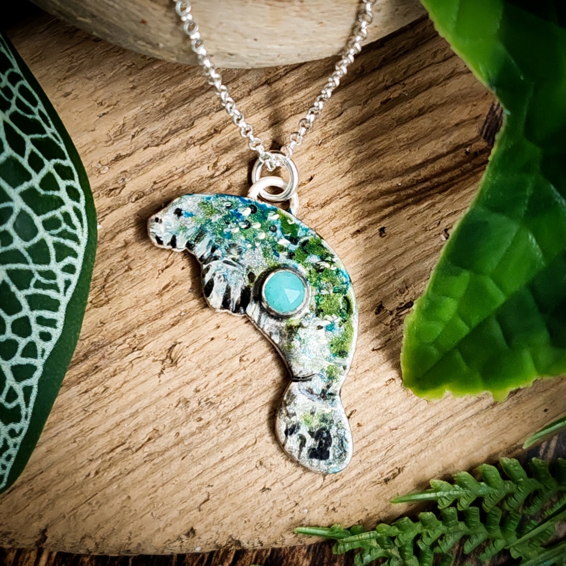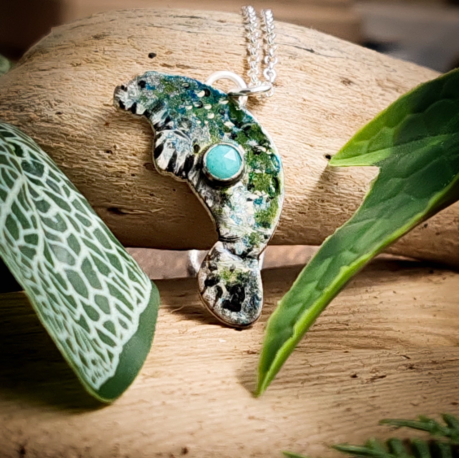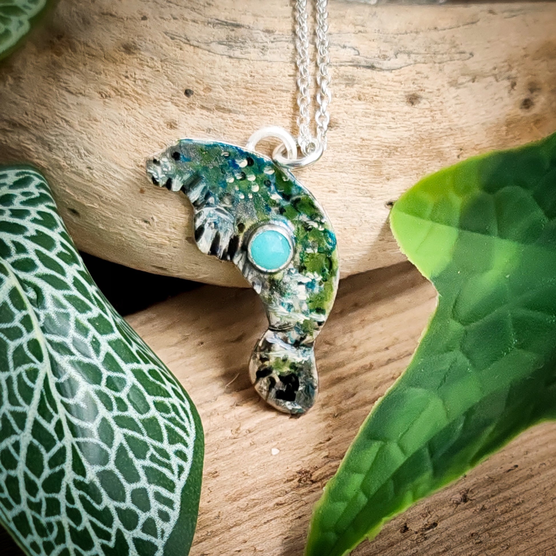 Made from recycled silver, adorned with a beautiful turquoise gemstone and hand painted this will be a real talking point!