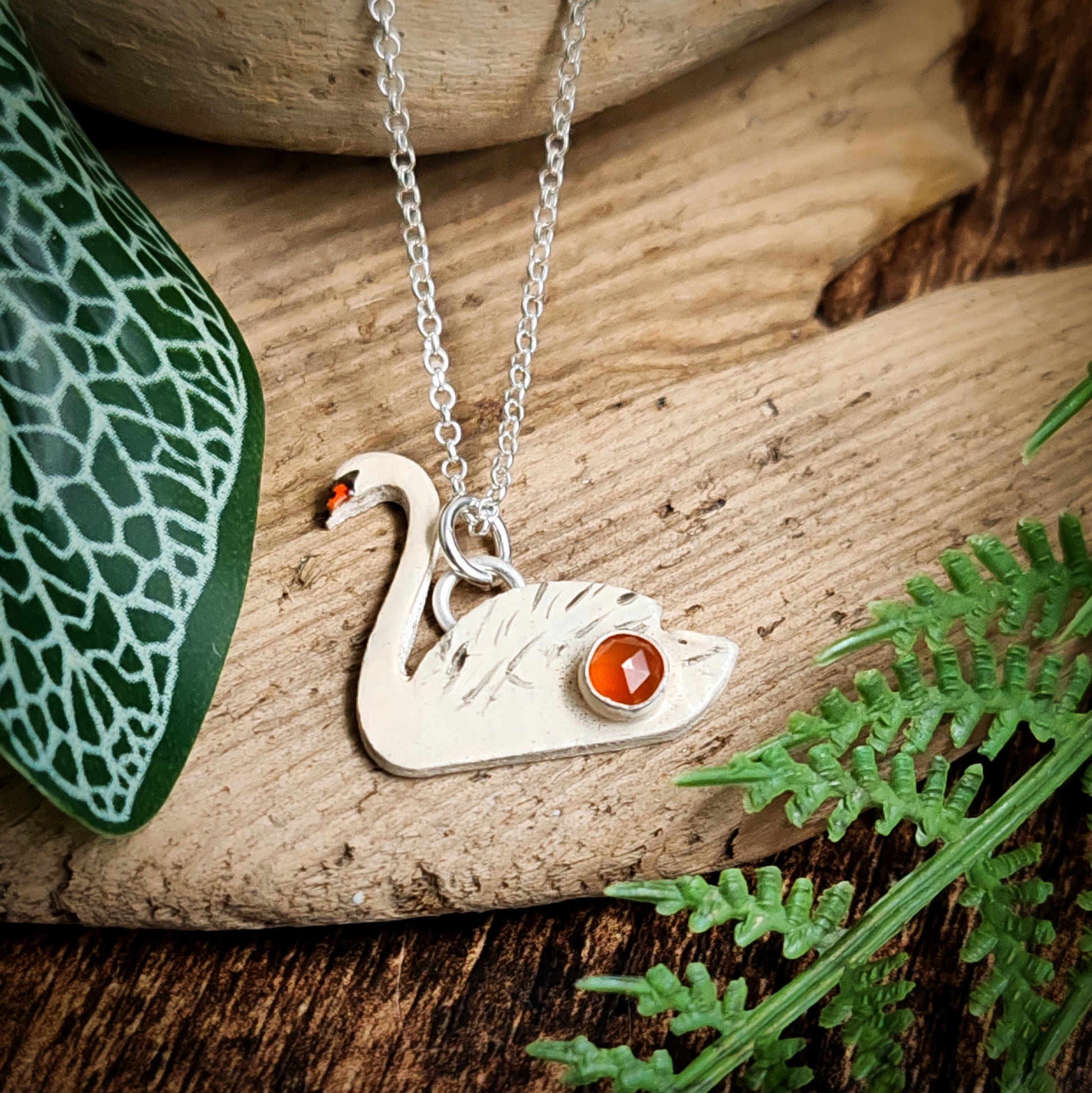 Don't you think swans are just so beautiful?! Such graceful birds to watch gliding on the water. I'm lucky enough to see two swans most days on my lunchtime walk. I just loved capturing this beauty in this pendant. I carefully hand painted the details and I'm over the moon with the result!