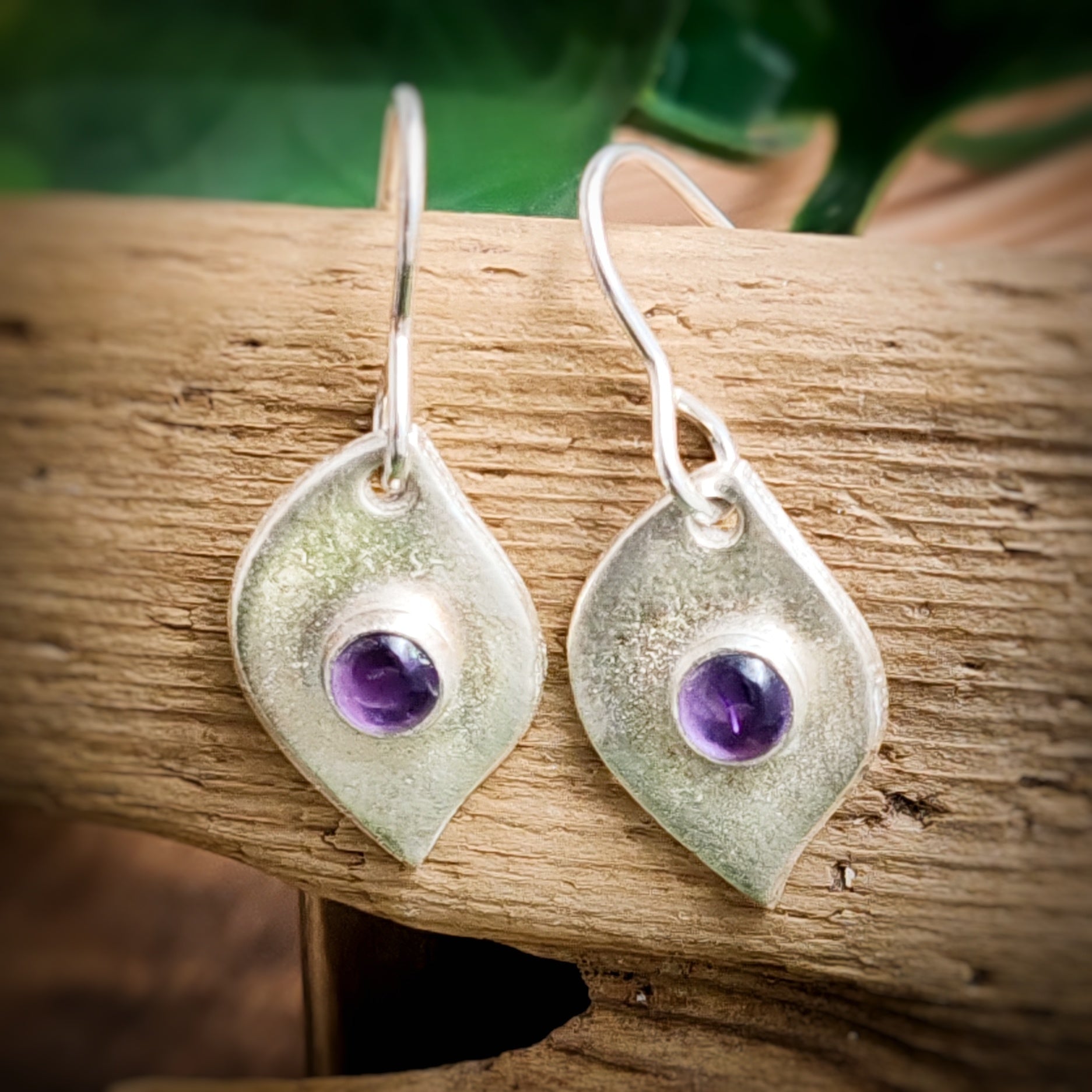 Make a statement in these gorgeous Leaf Dangle Earrings With Amethyst! Crafted from recycled silver, these leaf-shaped earrings will bring a touch of nature to any outfit and be sure to turn heads. Set with an amethyst gemstone, these earrings bring a unique beauty - perfect for the fashion-forward nature lover!