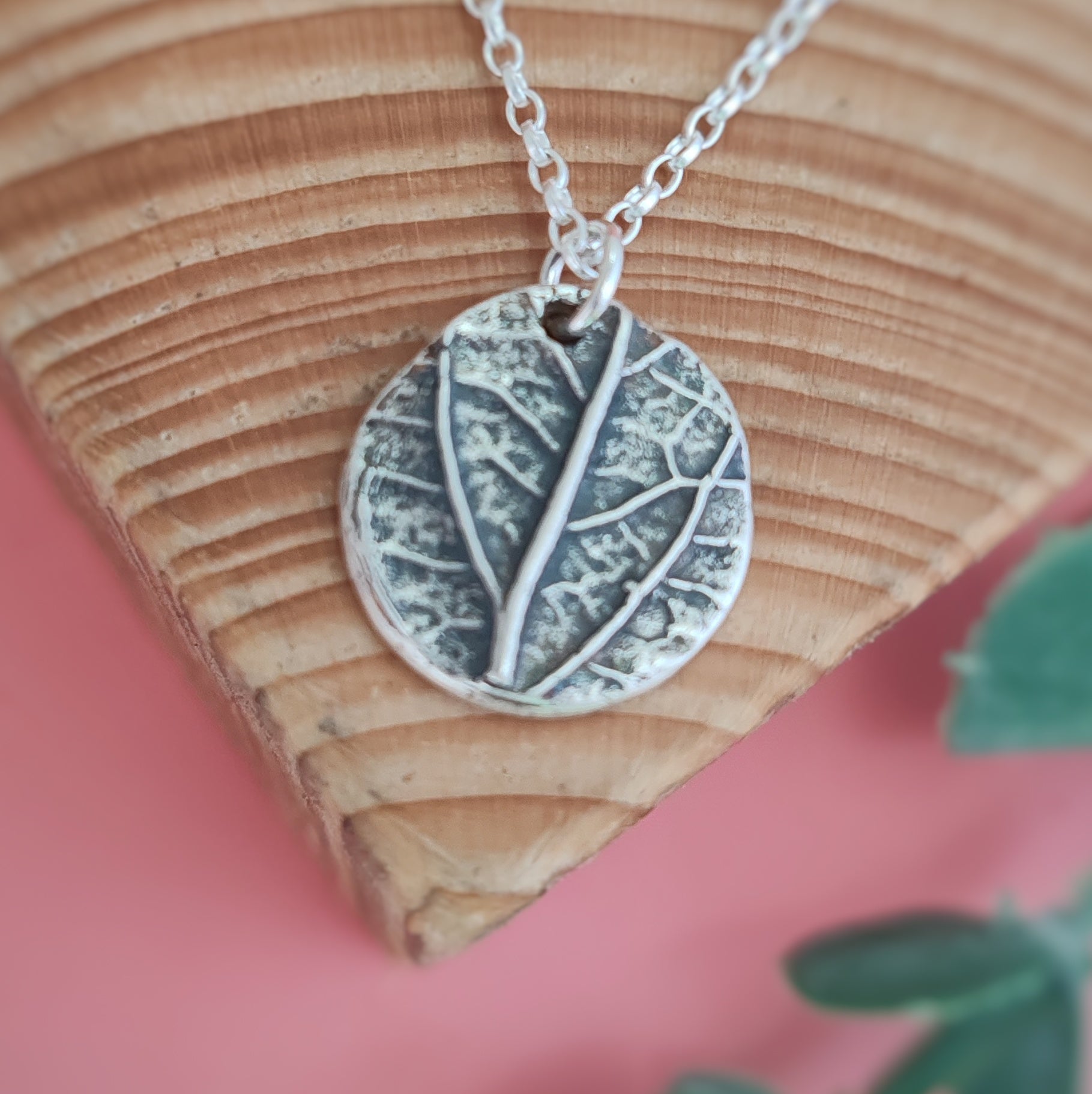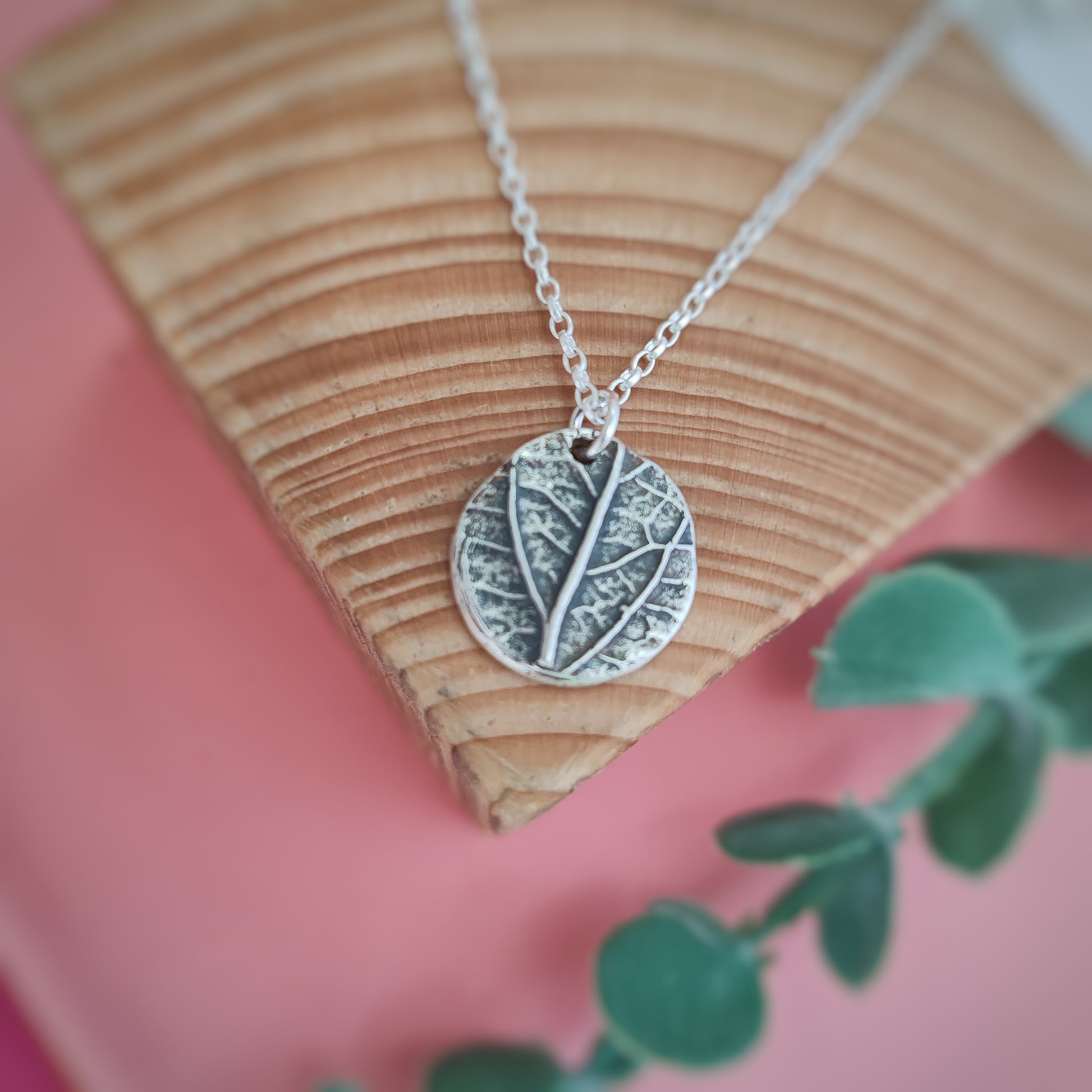 Stunning solid silver pendant depicting a real leaf. This beautiful piece is made using a mould of a real leaf with the impression taken in silver clay. Silver clay is an amazing product that acts like normal clay but once fired leaves solid silver. It is made from recycled silver from the electronics industry so is an eco friendly choice too. This beautiful pendant hangs from an 18" recycled sterling silver chain.