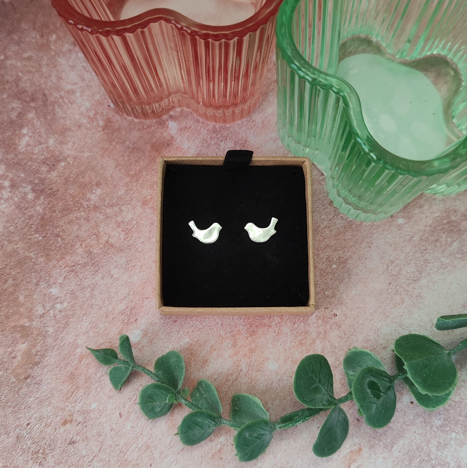 These gorgeous bird stud earrings are made from recycled silver and are supplied with a push on butterfly back. Each bird measures approximately 12mm x 7mm. They would make a perfect gift or a little treat for yourself!