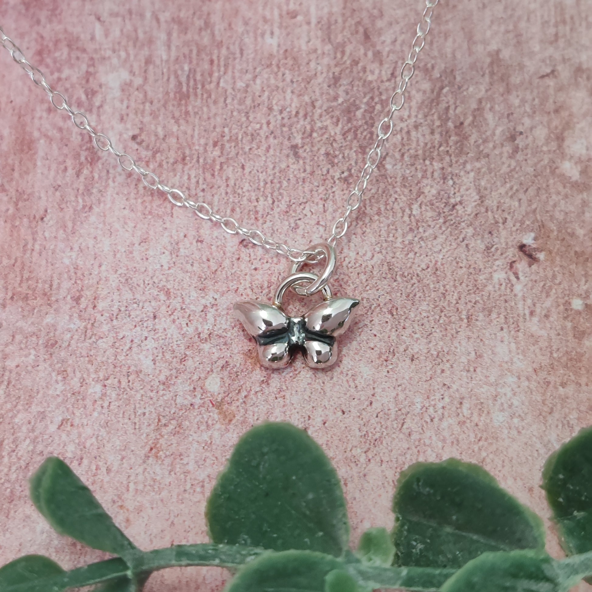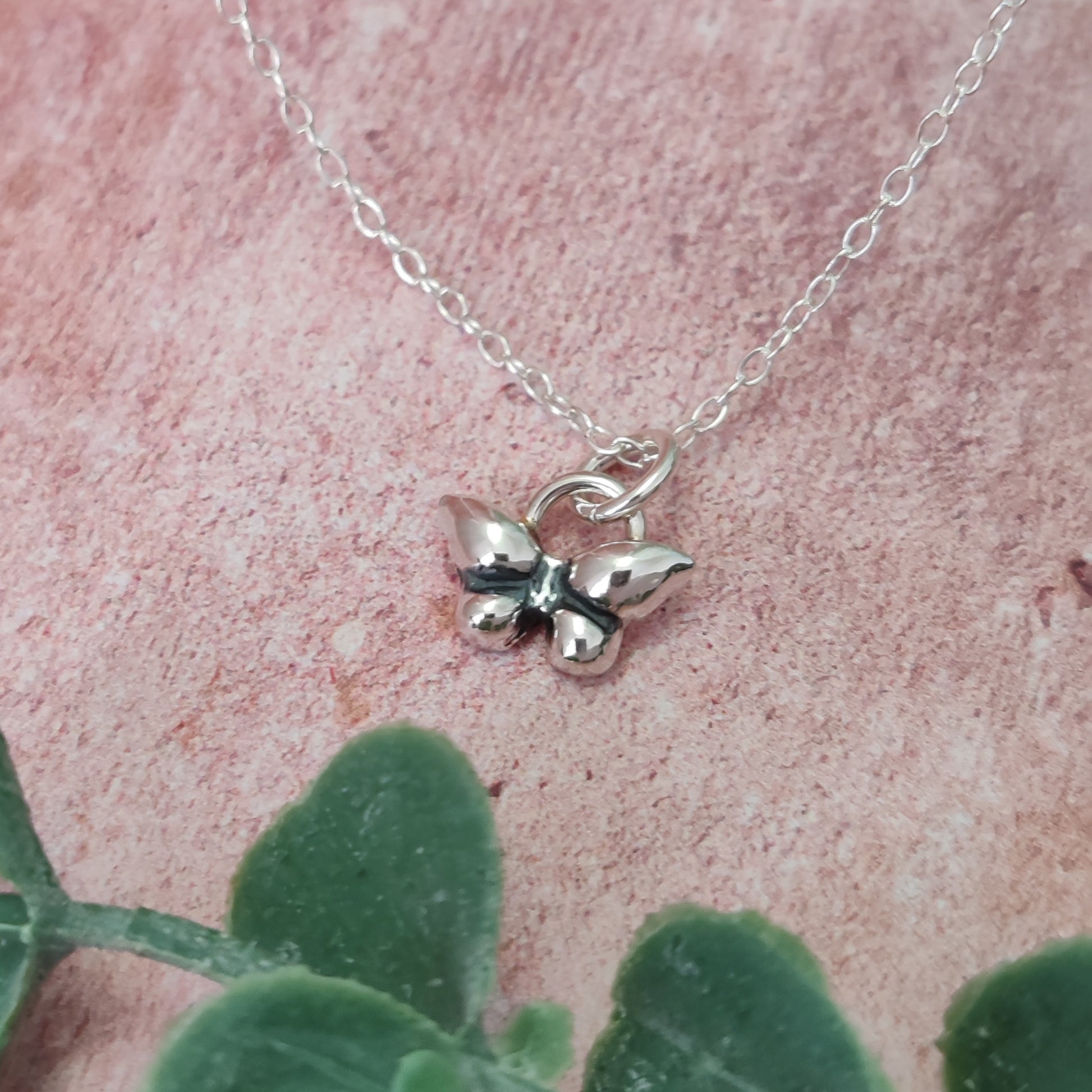 This gorgeous little butterfly pendant is made from recycled silver and measures approximately 12mm x 8mm. It comes on a pretty 18" recycled silver trace chain. This is the perfect little necklace for everyday wear and could also be dressed up for an evening out. It would make the perfect gift too.