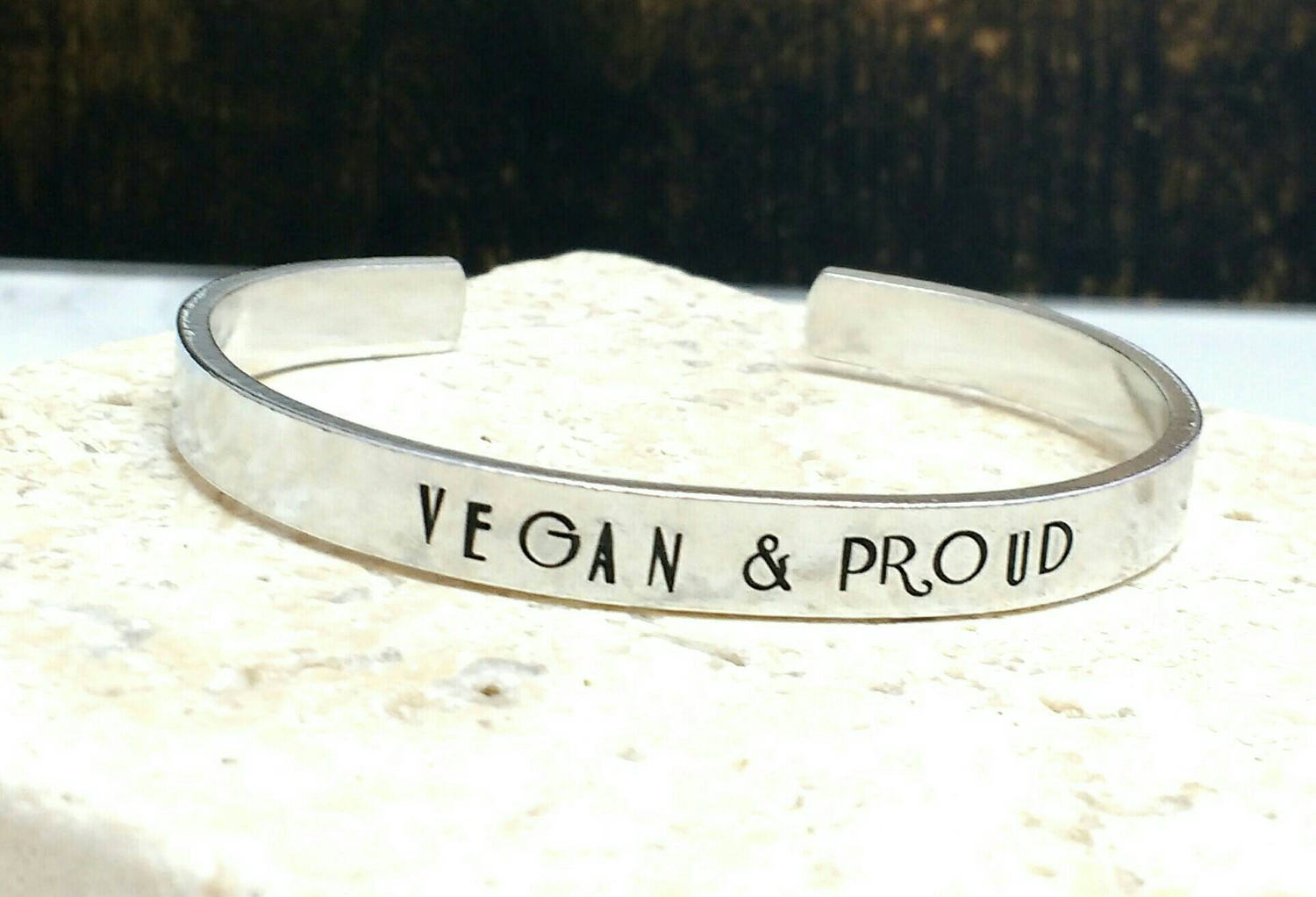 Vegan and proud art deco font bracelet made from either copper or hallmarked sterling silver. This is fully adjustable so will fit most wrist sizes. Carry around a little mantra to cheer up your day or give as a gift to let someone know how much they mean to you.
