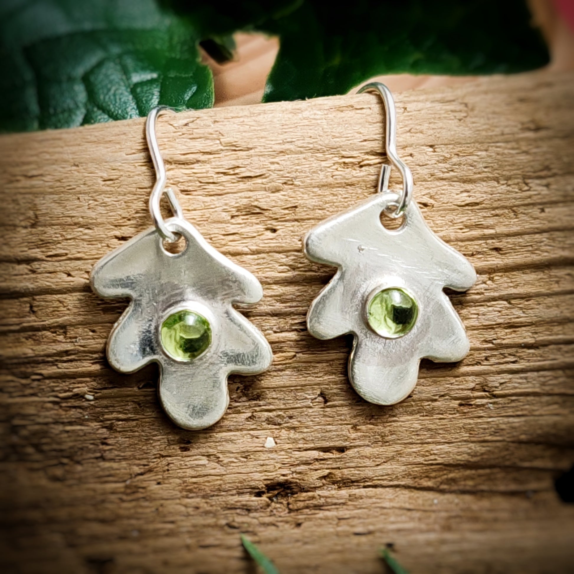 Create a timeless style with these exquisite Wavy Leaf Dangle Earrings; handcrafted with recycled silver and featuring a beautiful peridot gemstone, these earrings are a must-have for any jewelry collection. Show off your effortless style with these one-of-a-kind earrings!